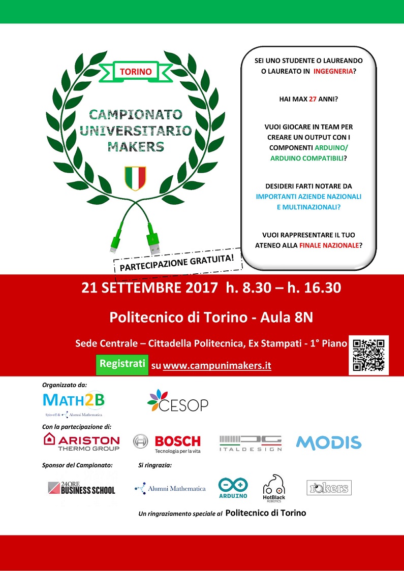 Riparte da Torino dopo la pausa estiva il Campionato Universitario Makers. Il 21 Settembre, dalle 8:30 alle 16:30, si terrà la seconda tappa al Politecnico di Torino.