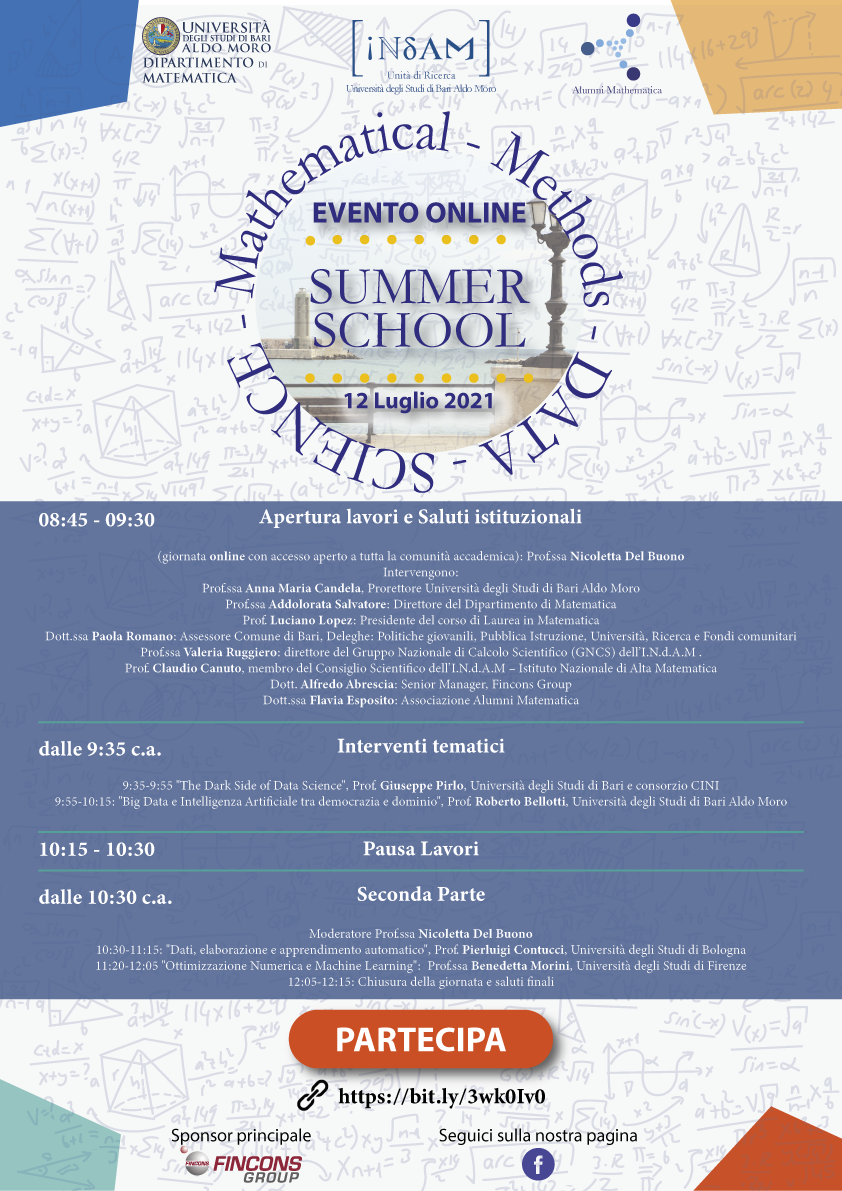 Al via la terza edizione della Summer School Mathematical Methods in Data Science