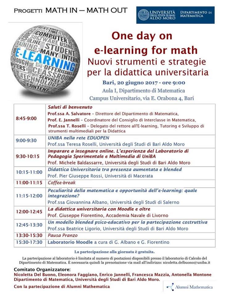 One Day on E-Learning for Math alumni14 Giugno 2017Eventi, News Associazione, Partecipazioni, Talk e Conferenza