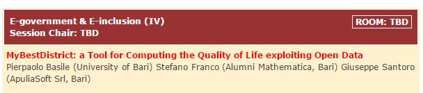 Presenteremo il nostro tool My Best District che permette di calcolare il quartiere più idoneo in cui vivere rispondendo a semplici domande (ne avevamo parlato abbondantemente qui).
