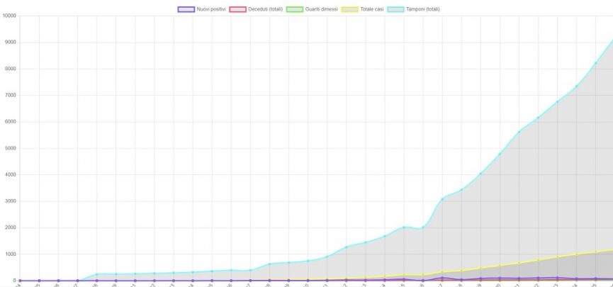 I grafici si aggiornano automaticamente ogni volta che vengono caricati nuovi dati dalla Protezione Civile.